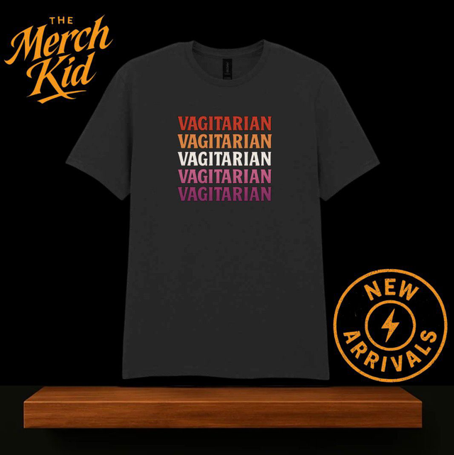 Grab our cheeky and fun VAGITARIAN tee in the lesbian flag colours for your next party, night out with the girls or for Pride.